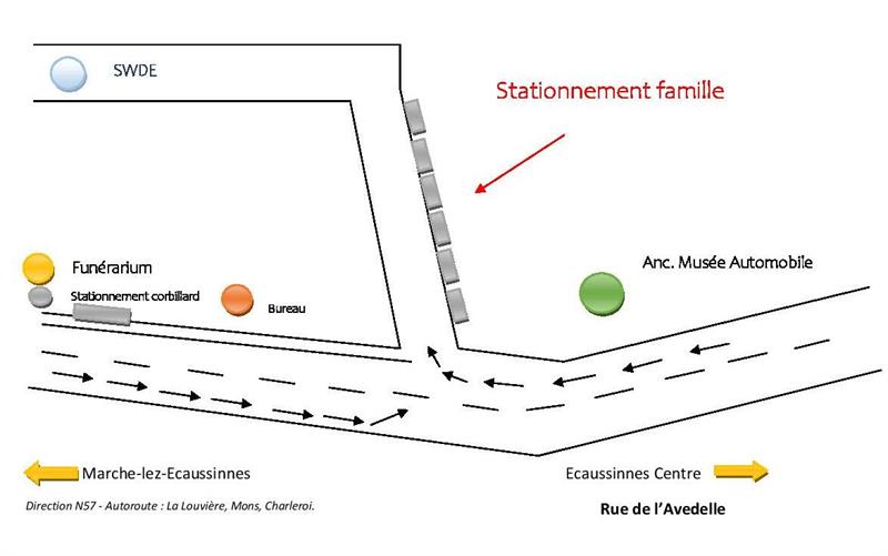 Notre funérarium est situé ente Ecaussinnes et Marche-lez-Ecaussinnes.Rue de l'Avedelle 38 A (Axe principal) entre les deux entités.