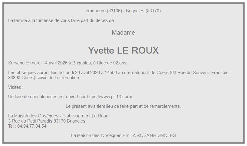 Crématorium de Cuers op maandag 20 april om 14 u