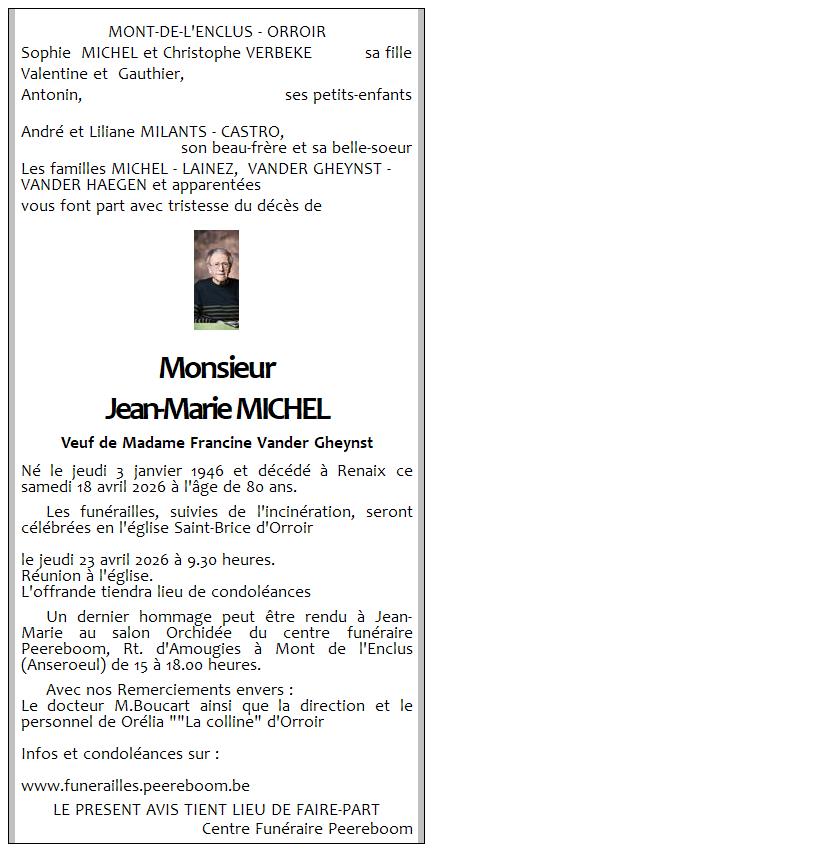 Cimetière de Orroir le jeudi 23 avril à 14 heures 30