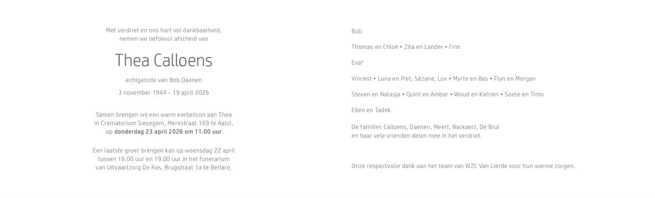 Décédée à Hekelgem (1790) le dimanche 19 avril 2026 à l'âge de 81 ans