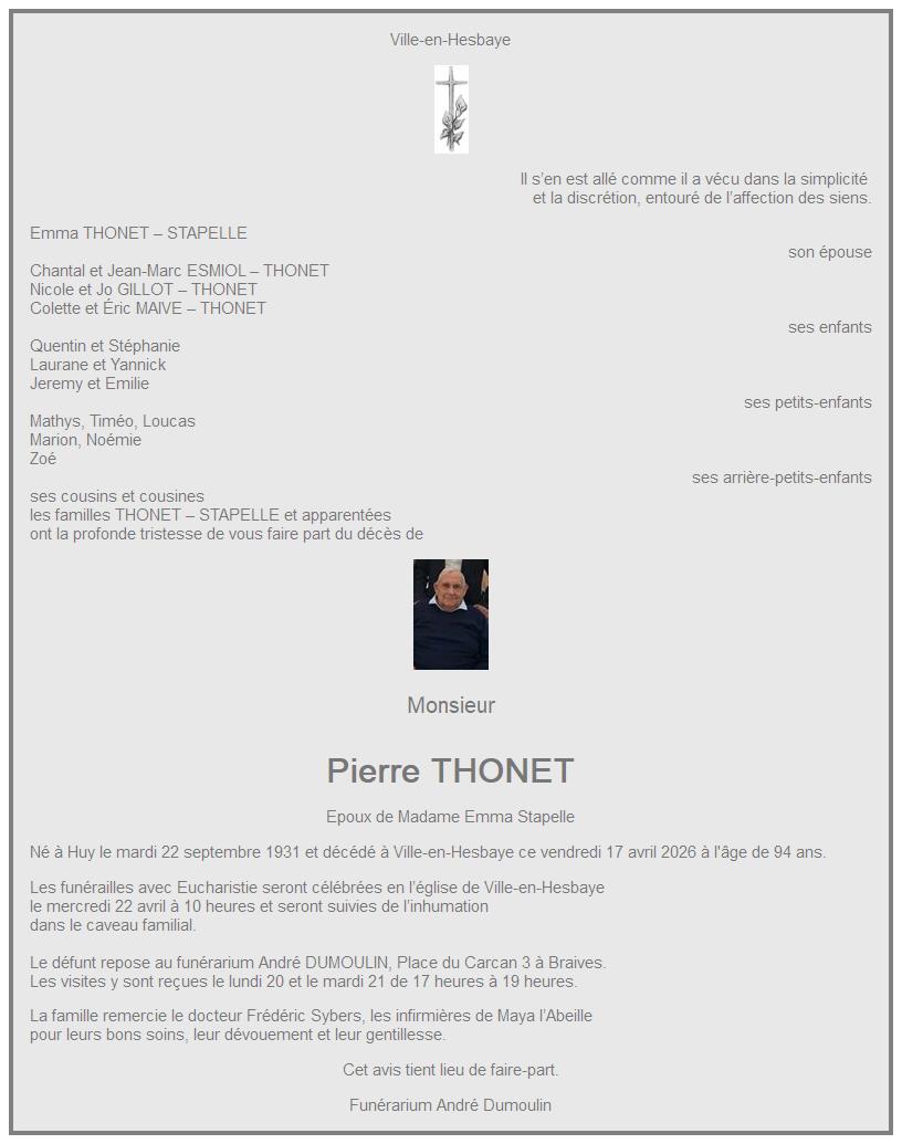 cimetière de Ville-en-Hesbaye le mercredi 22 avril à 11 heures 15