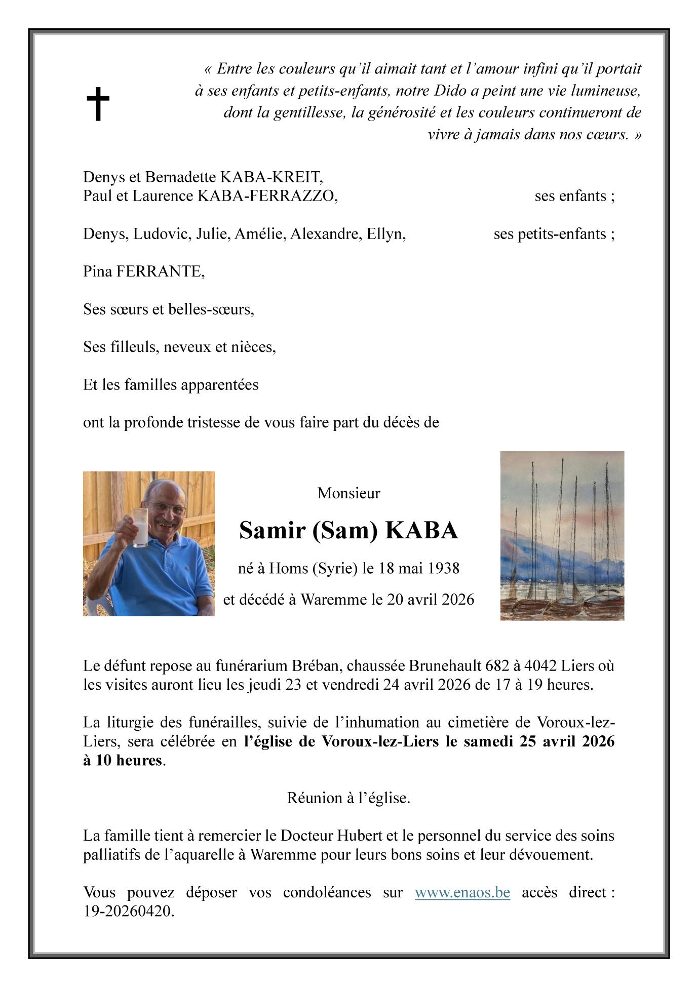 Décédé à Waremme (4300) le lundi 20 avril 2026 à l'âge de 87 ans
