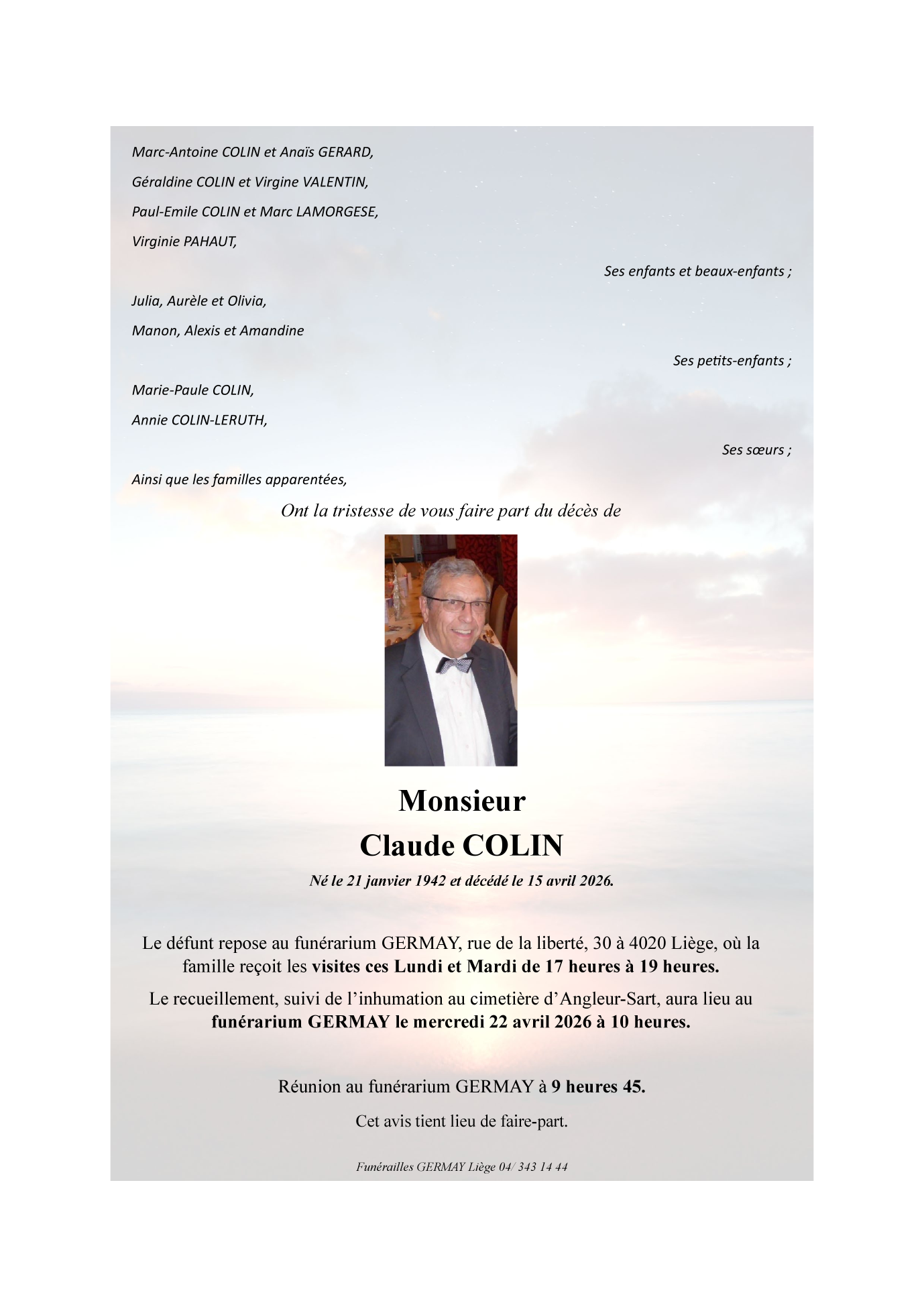 PF Germay - Liège de Liège le mercredi 22 avril à 10 heures