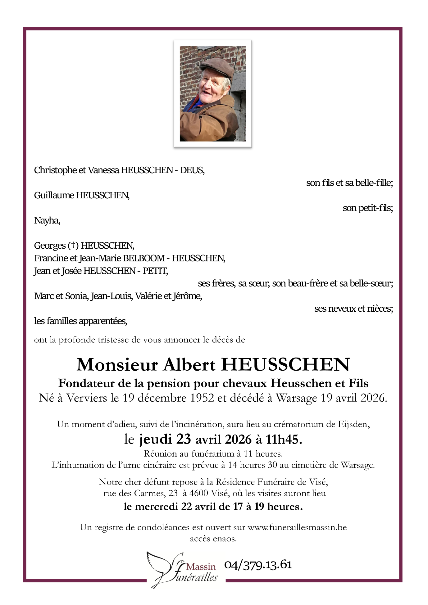 Crematorium de Eijsden le jeudi 23 avril à 12 heures 15