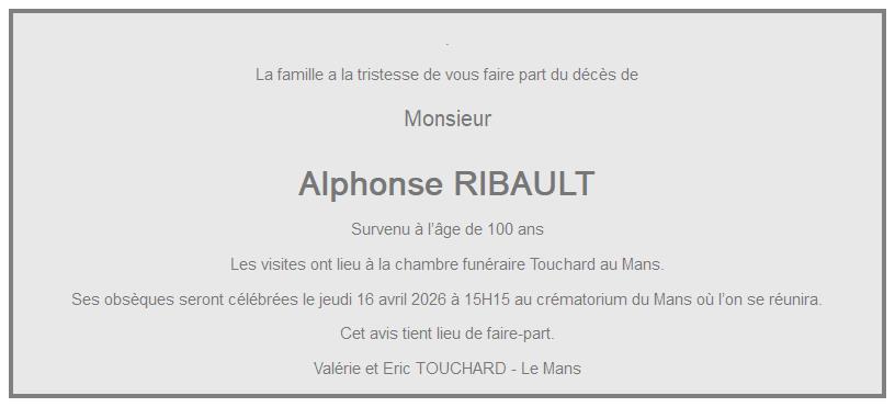 Avis de décès de Monsieur Alphonse RIBAULT