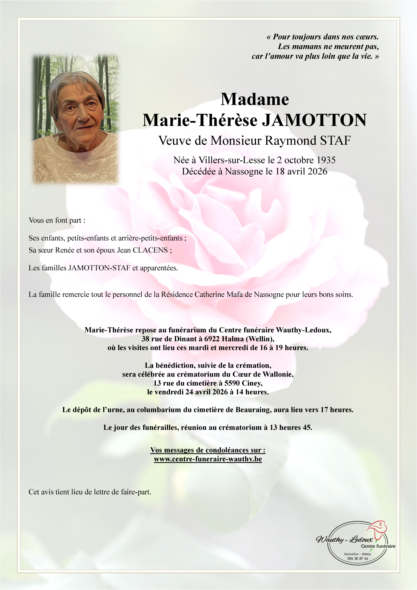 crématorium du Coeur de Wallonie de Ciney le vendredi 24 avril à 14 heures