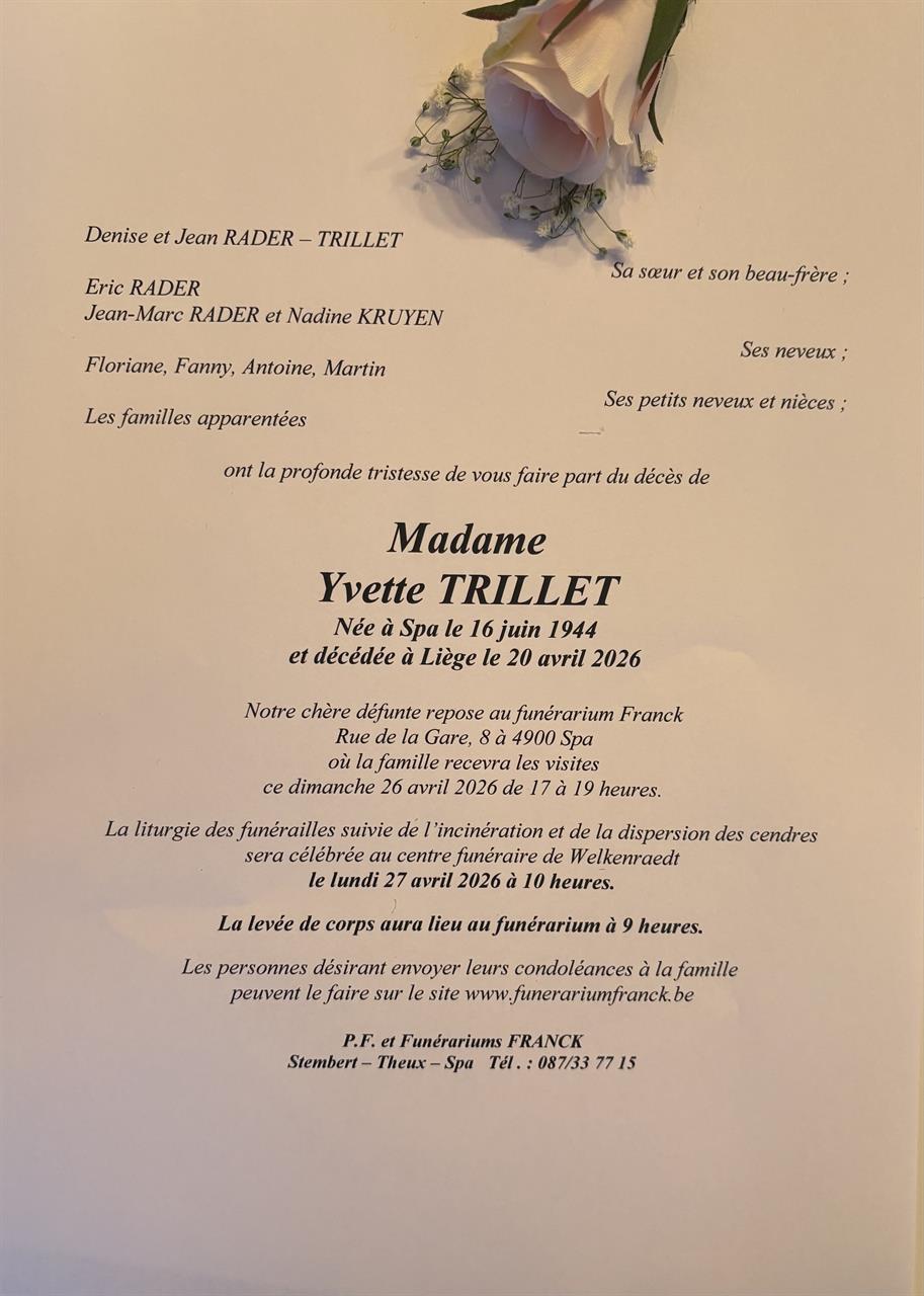 Died in Liège (4000) on 20 April 2026 at the age of 81 years