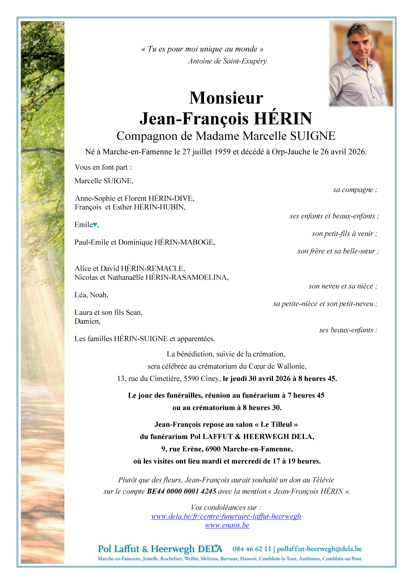 Avis de décès de Monsieur Jean-François HÉRIN