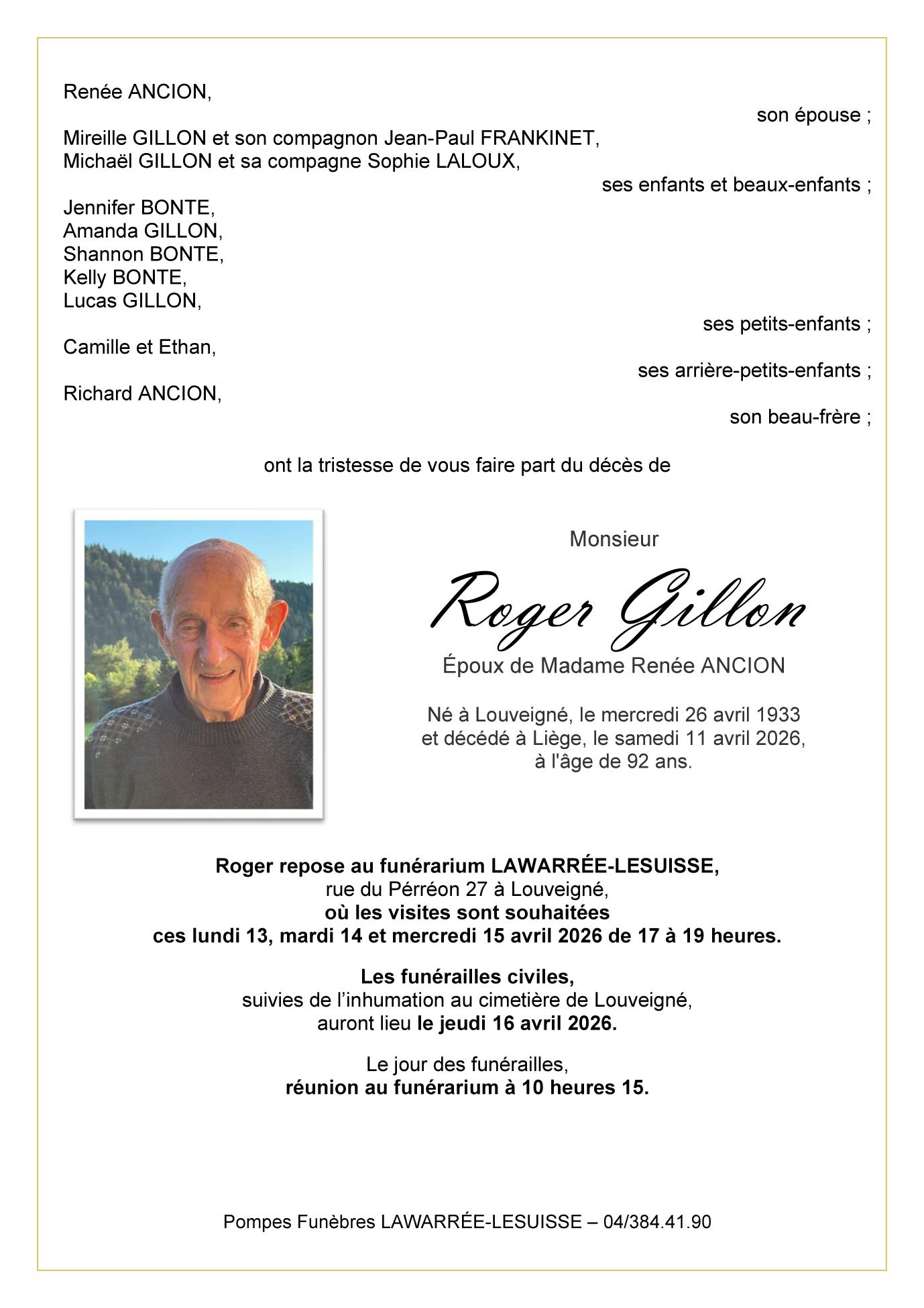 Overleden te Liège (4000) op zaterdag 11 april 2026 op 92-jarige leeftijd