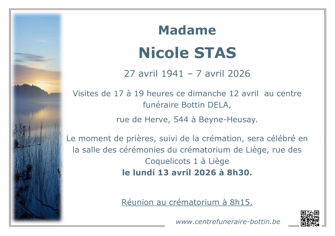 Crématorium de Robermont de Robermont demain, lundi 13 avril à 8 heures 30