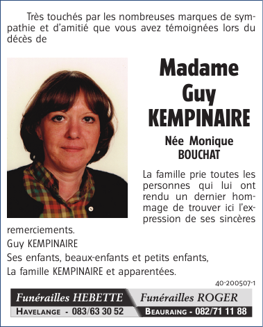 Décédée à Huy (4500) le vendredi 21 novembre 2014 à l'âge de 65 ans