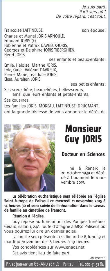 Décédé à Libramont (6800) le samedi 7 novembre 2015 à l'âge de 76 ans