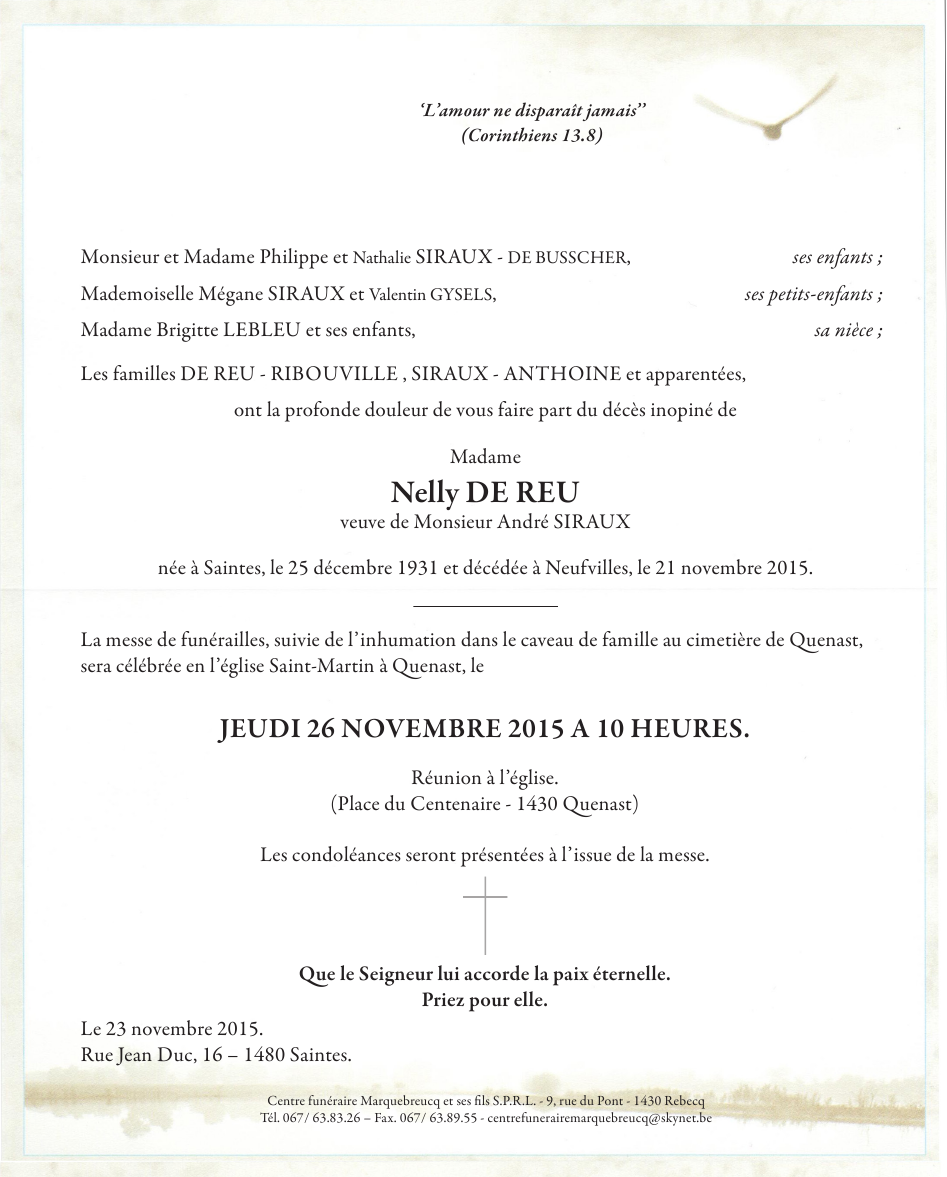 Fallecida en Soignies (7060) el sábado, 21 de noviembre de 2015 a la edad de 83 años