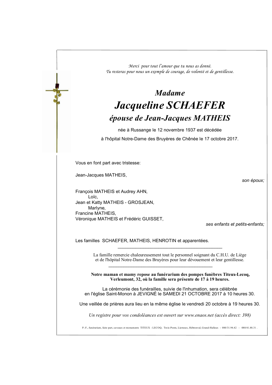 Overleden te Chênée (4032) op dinsdag 17 oktober 2017 op 79-jarige leeftijd