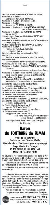 Veuf de la Baronne Clarisse van der Straeten Waillet