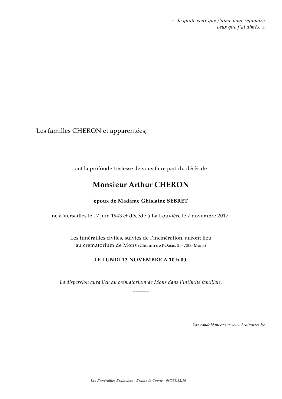 Décédé à La Louvière (7100) le mardi 7 novembre 2017 à l'âge de 74 ans