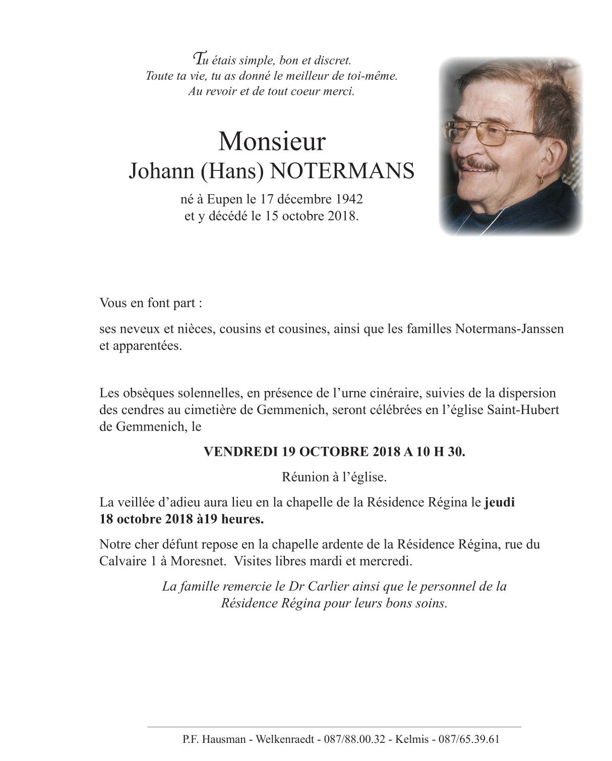 Monsieur Johann ( Hans) NOTERMANS