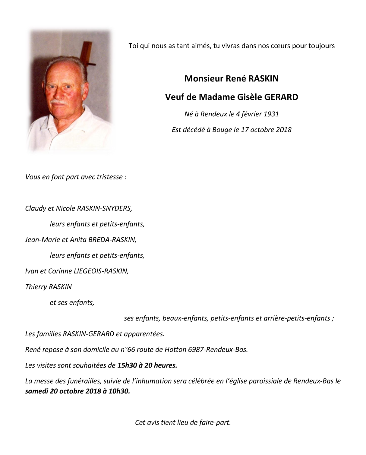 Overleden te Bouge (5004) op woensdag 17 oktober 2018 op 87-jarige leeftijd