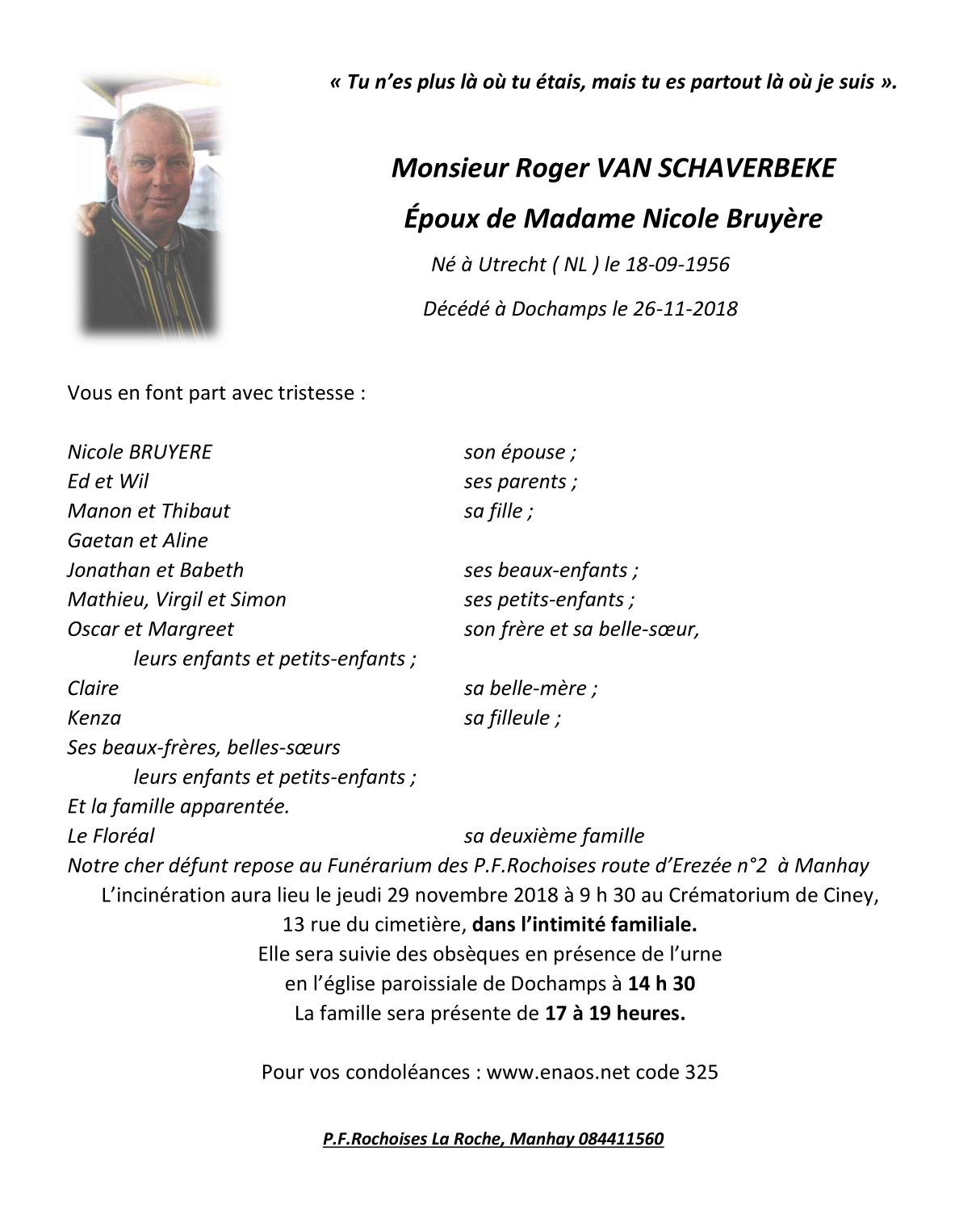 Décédé à Dochamps (6960) le lundi 26 novembre 2018 à l'âge de 62 ans