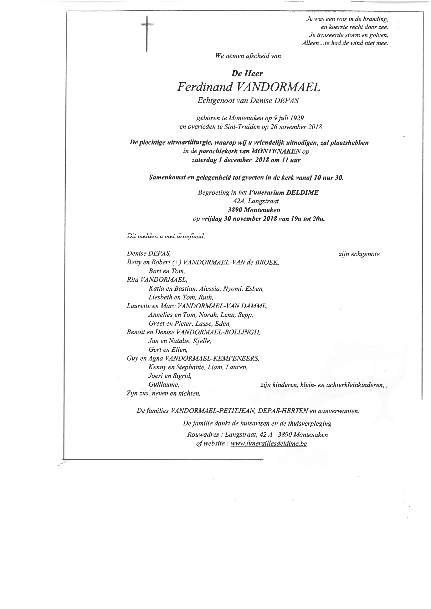Décédé à Sint-Truiden (3800) le lundi 26 novembre 2018 à l'âge de 89 ans