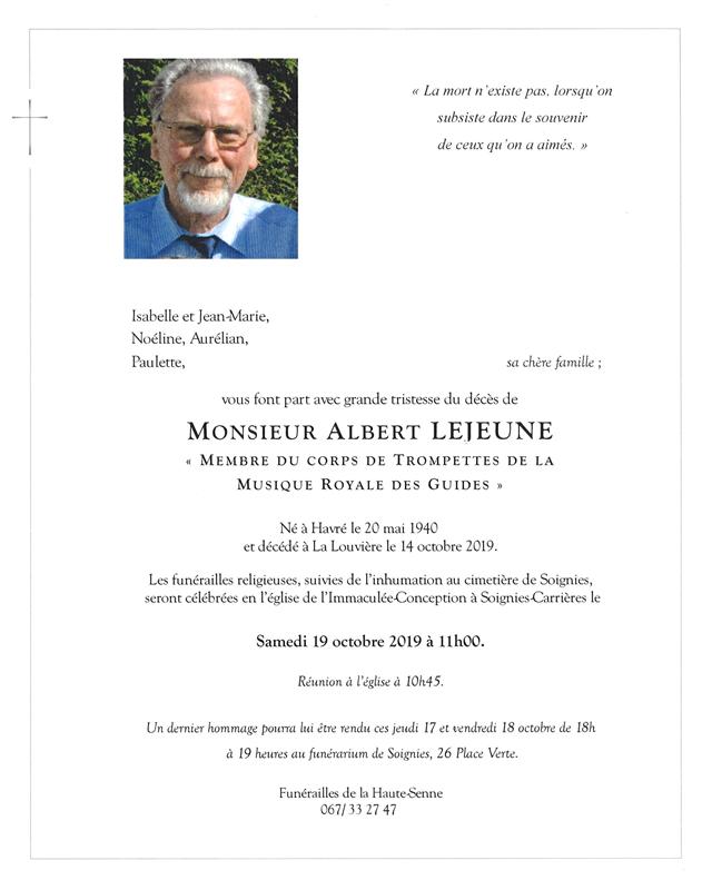 Fallecido en La Louvière (7100) el lunes, 14 de octubre de 2019 a la edad de 79 años