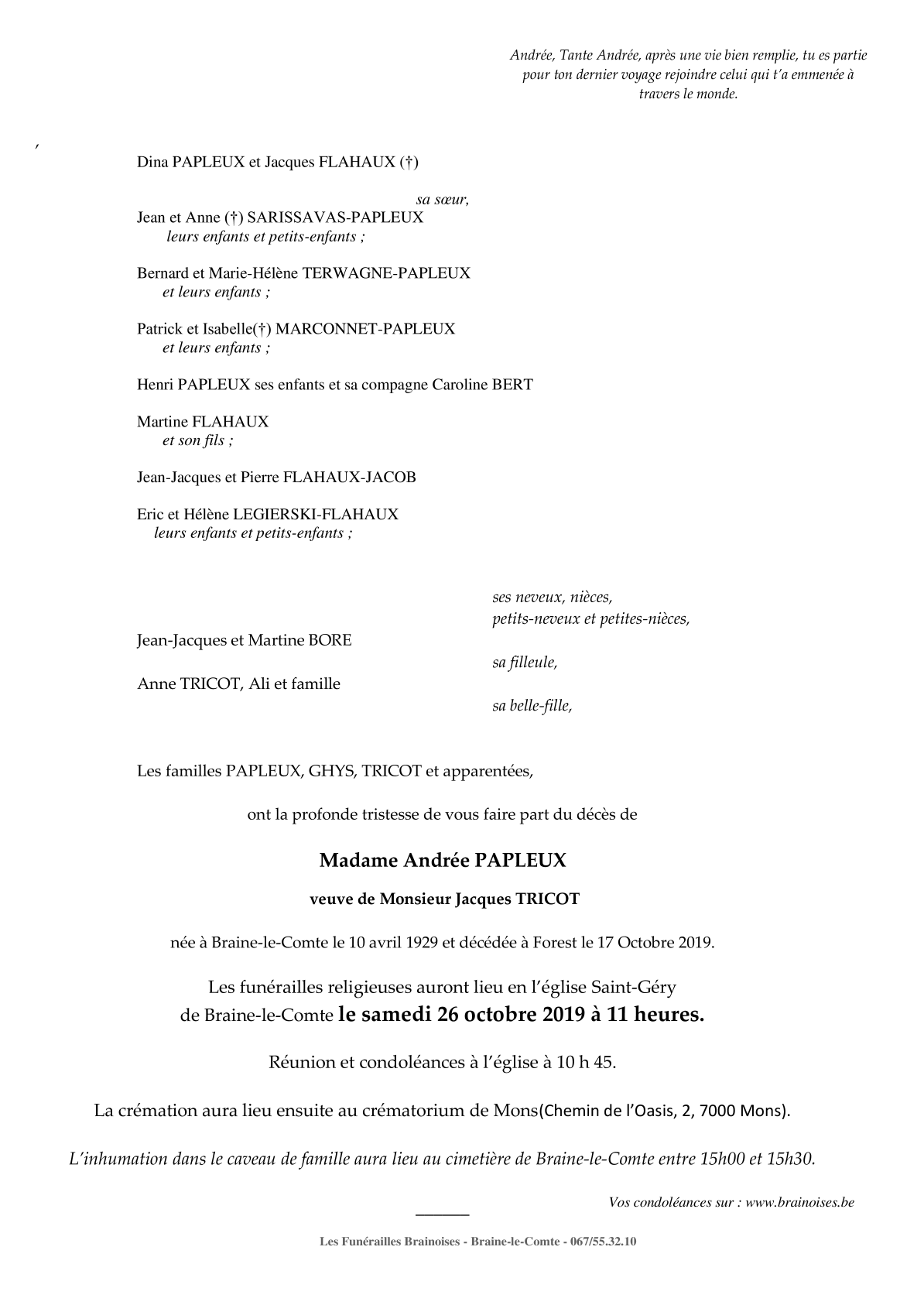 Died in Forest (1190) on 17 October 2019 at the age of 90 years