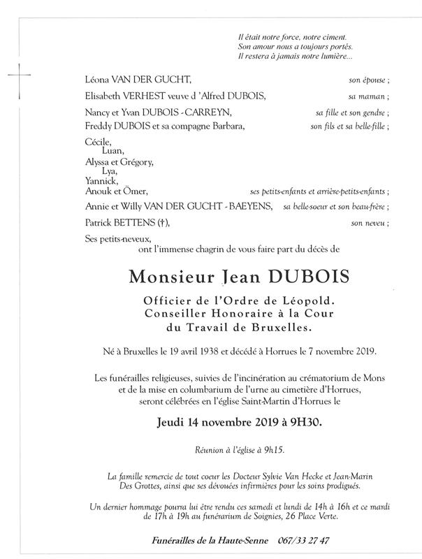 Décédé à Horrues (7060) le jeudi 7 novembre 2019 à l'âge de 81 ans