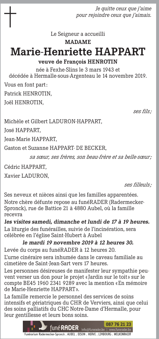 Madame Marie-Henriette HAPPART
