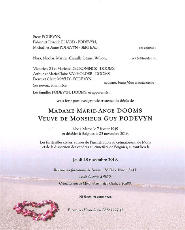 Died in Soignies (7060) on 23 November 2019 at the age of 70 years