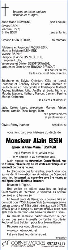 Décédé à Verviers (4800) le mardi 26 novembre 2019 à l'âge de 55 ans
