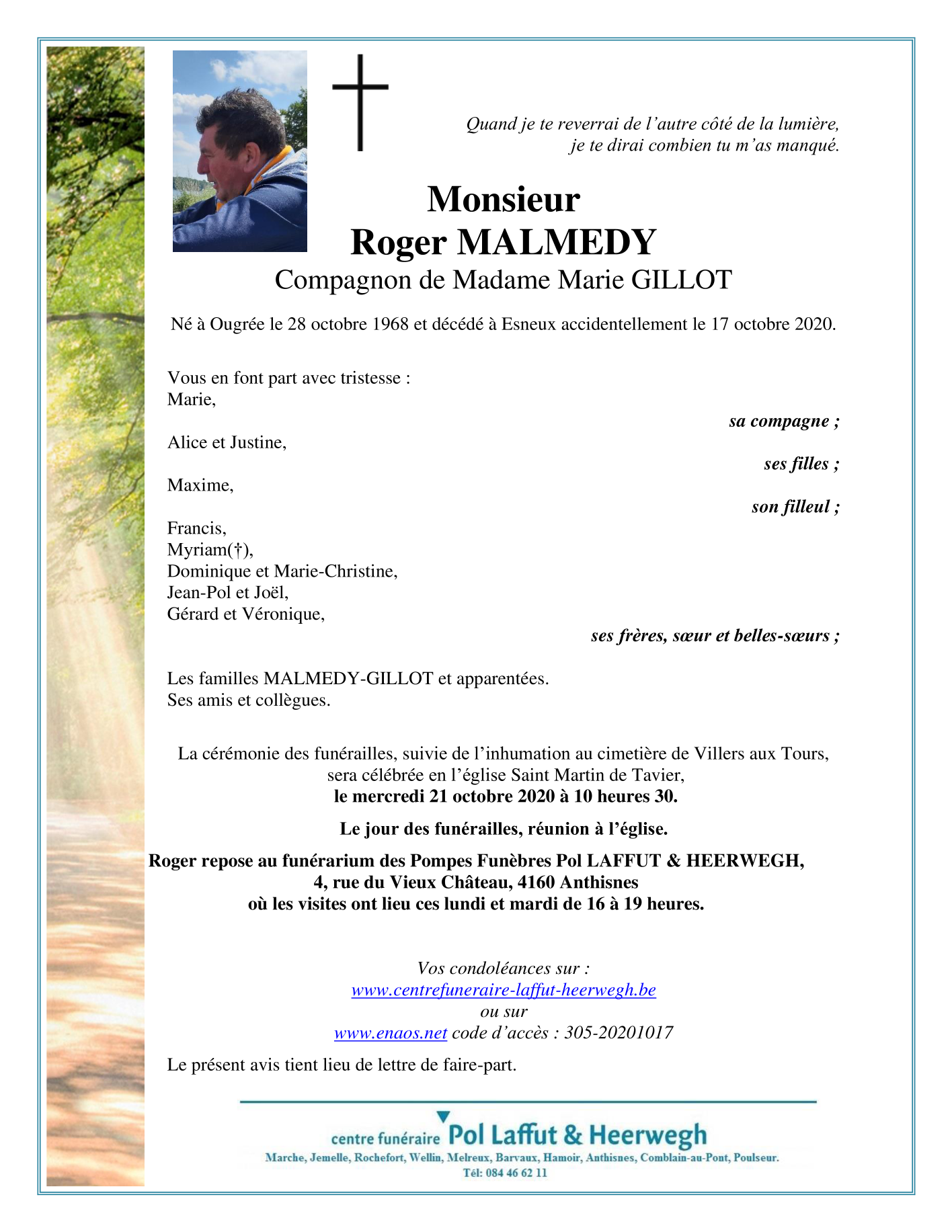 Died in Esneux (4130) on 17 October 2020 at the age of 51 years