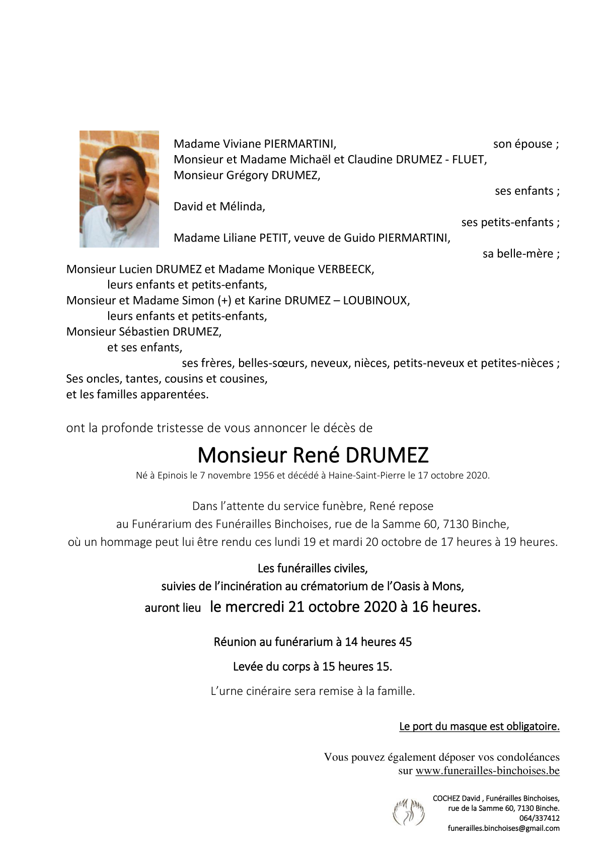 Died in La Louvière (7100) on 17 October 2020 at the age of 63 years
