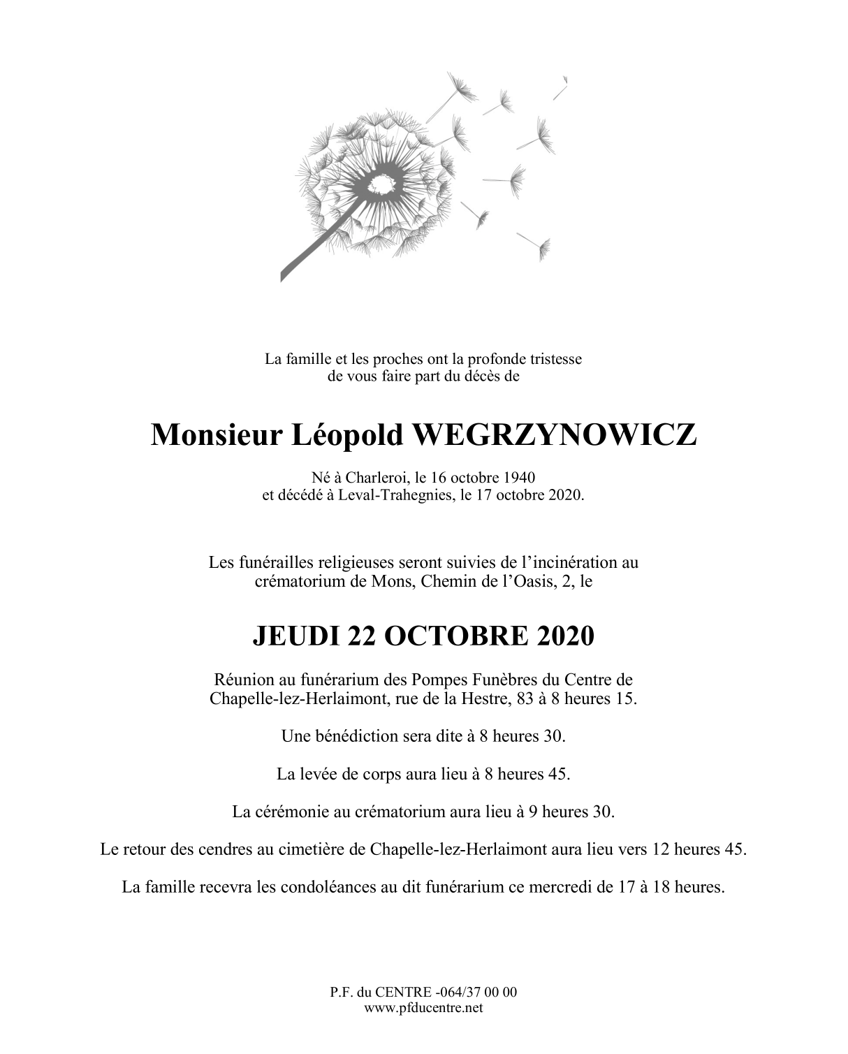 Décédé à Leval-Trahegnies (7134) le samedi 17 octobre 2020 à l'âge de 80 ans