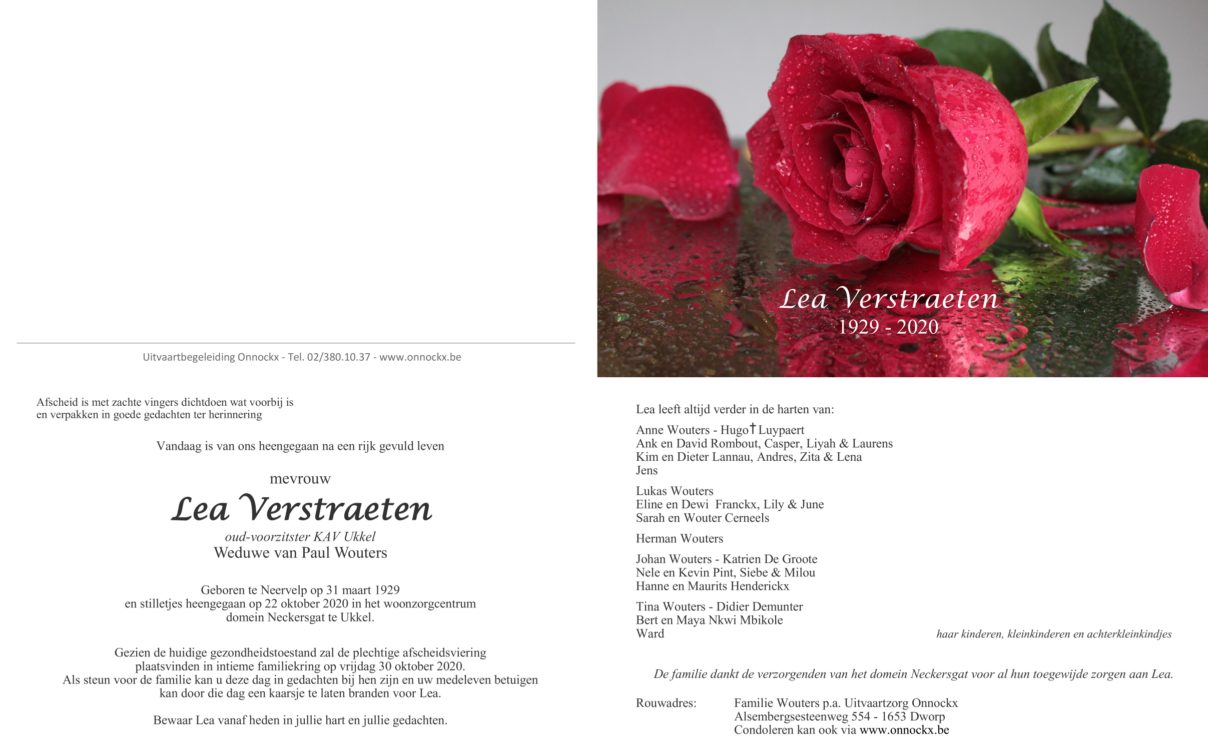 Décédée à Ukkel (1180) le jeudi 22 octobre 2020 à l'âge de 91 ans