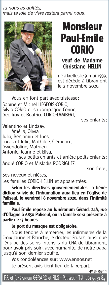 Fallecido en Libramont (6800) el lunes, 2 de noviembre de 2020 a la edad de 81 años