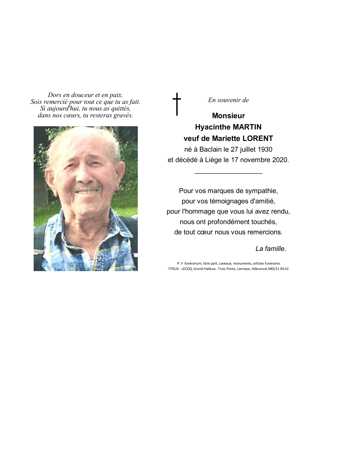 Décédé à Liège (4000) le mardi 17 novembre 2020 à l'âge de 90 ans