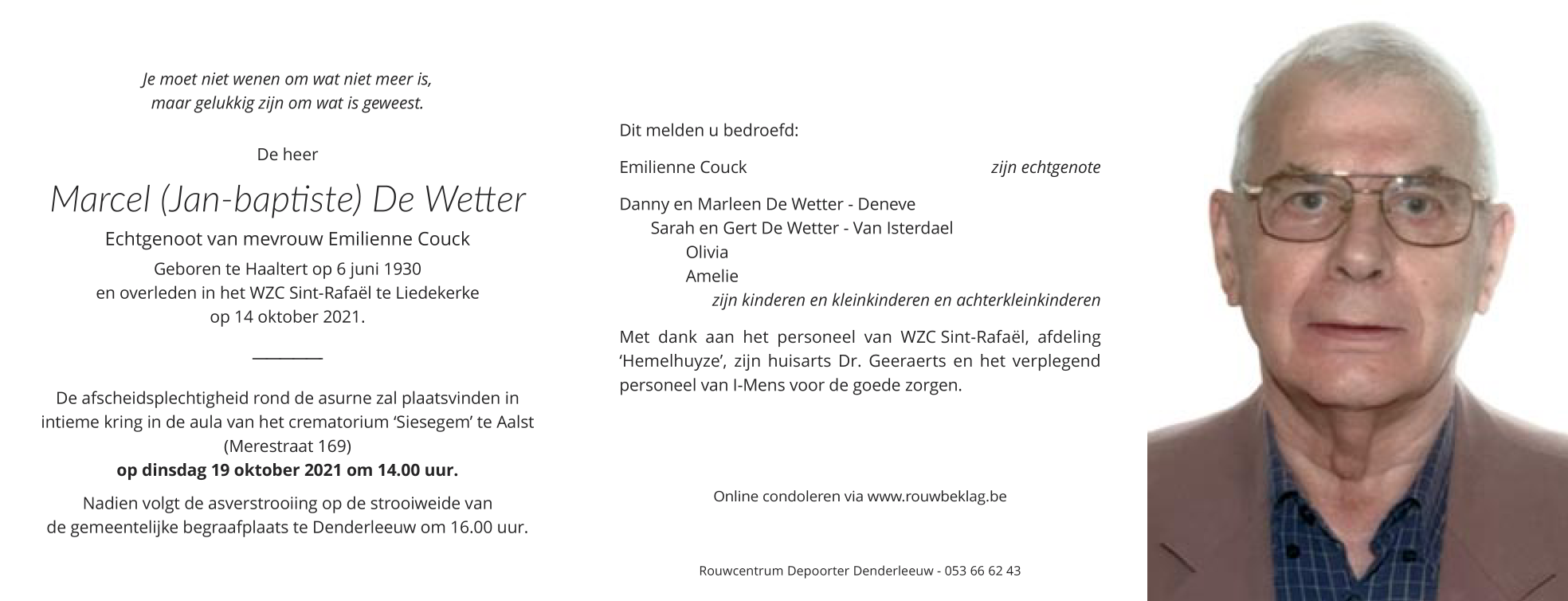 Died in Liedekerke (1770) on 14 October 2021 at the age of 91 years