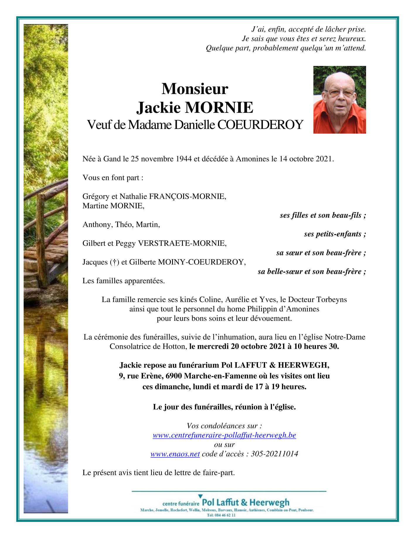 Décédé à Amonines (6997) le jeudi 14 octobre 2021 à l'âge de 76 ans