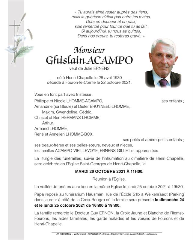 Décédé à Fouron-le-Comte (3798) le vendredi 22 octobre 2021 à l'âge de 91 ans
