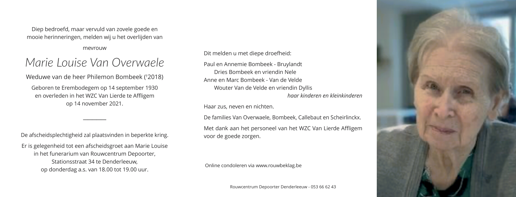 Nacida en Erembodegem (Aalst) (9320) el domingo, 14 de septiembre de 1930