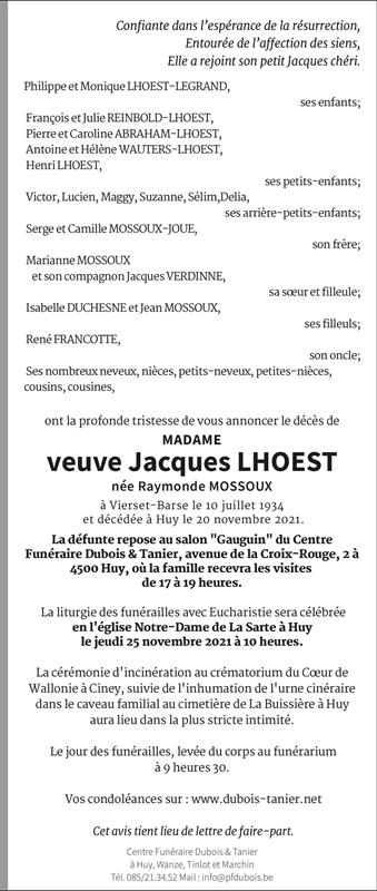 Weduwe van Monsieur Jacques LHOEST