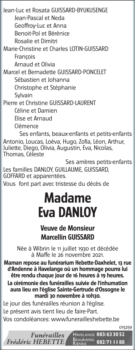 Madame Eva DANLOY