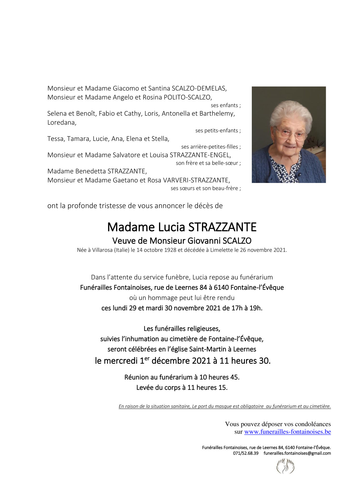 Décédée à Limelette (1342) le vendredi 26 novembre 2021 à l'âge de 93 ans