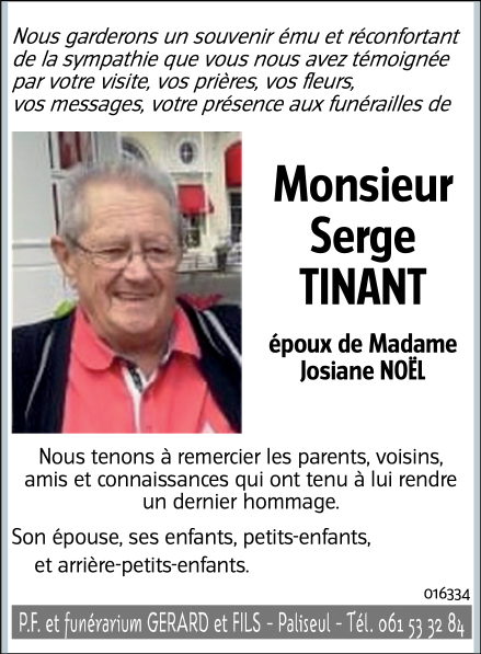 Décédé à Paliseul (6850) le lundi 22 novembre 2021 à l'âge de 76 ans