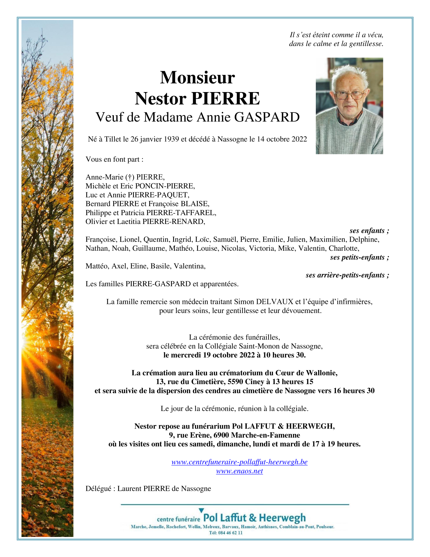 Décédé à Nassogne (6950) le vendredi 14 octobre 2022 à l'âge de 83 ans