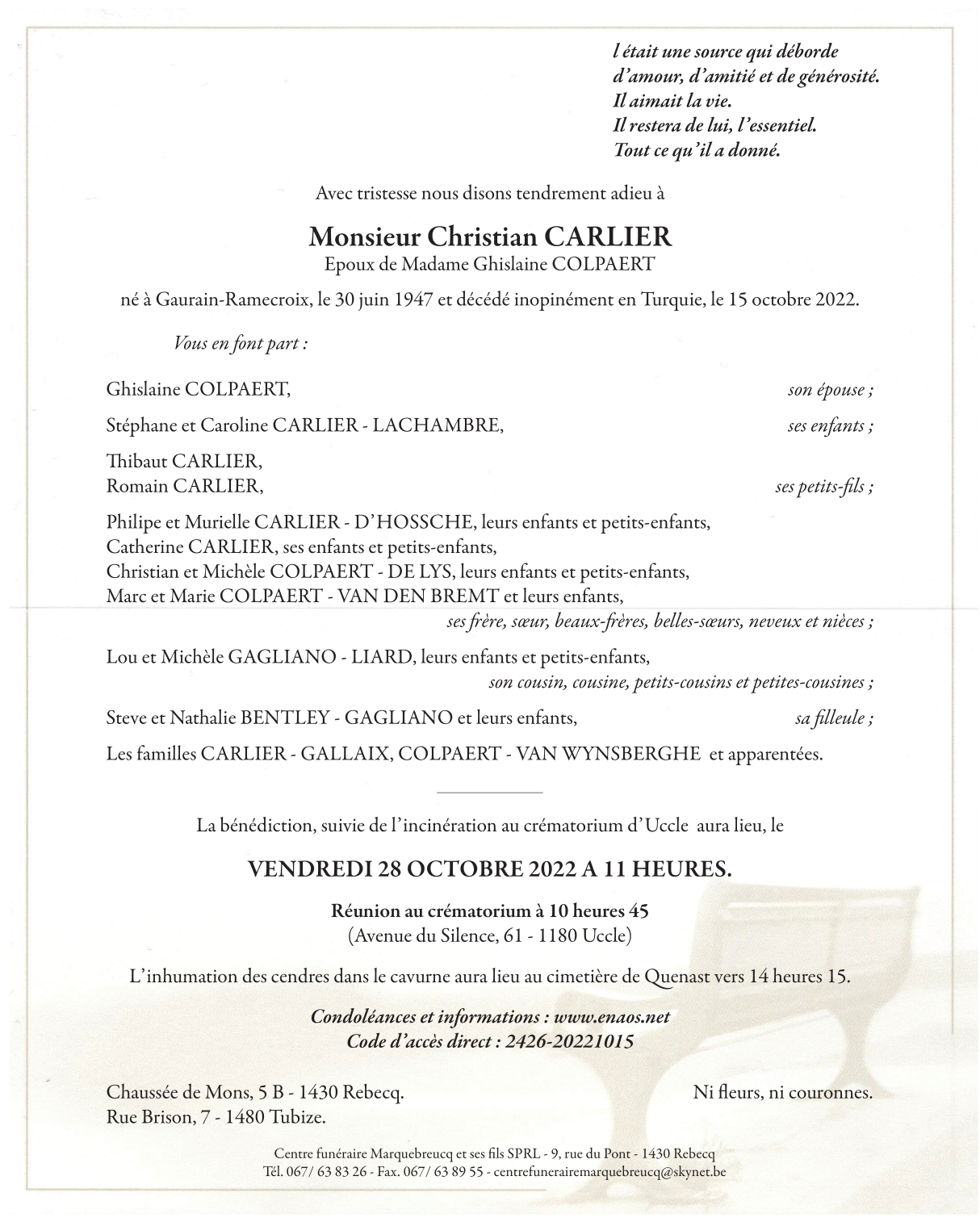 Décédé à Istanbul (Turquie) le samedi 15 octobre 2022 à l'âge de 75 ans