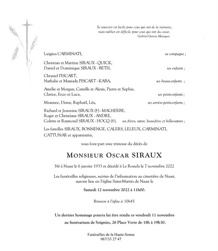 Monsieur Oscar SIRAUX