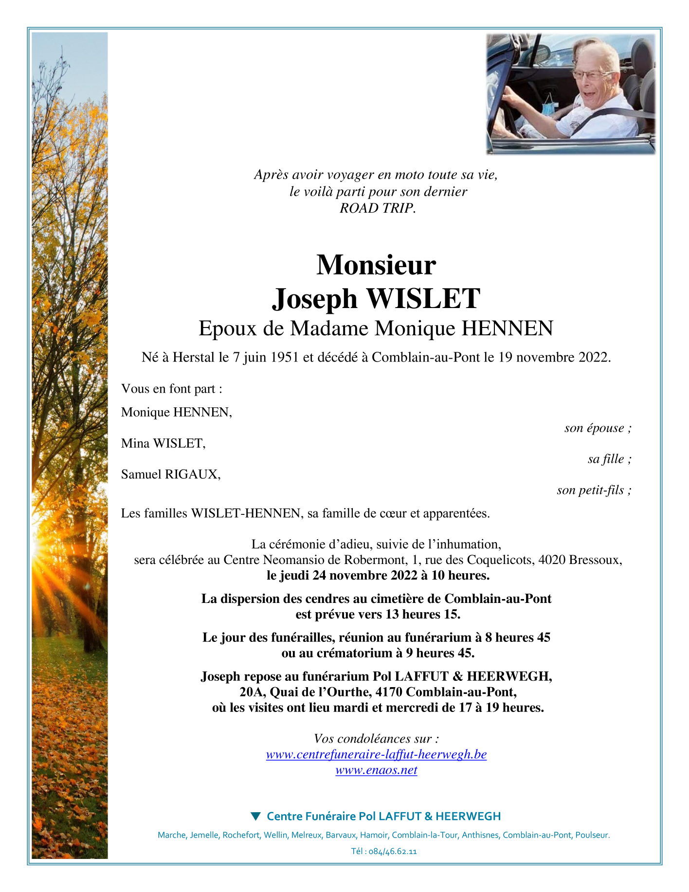 Fallecido en Comblain-au-Pont (4170) el sábado, 19 de noviembre de 2022 a la edad de 71 años