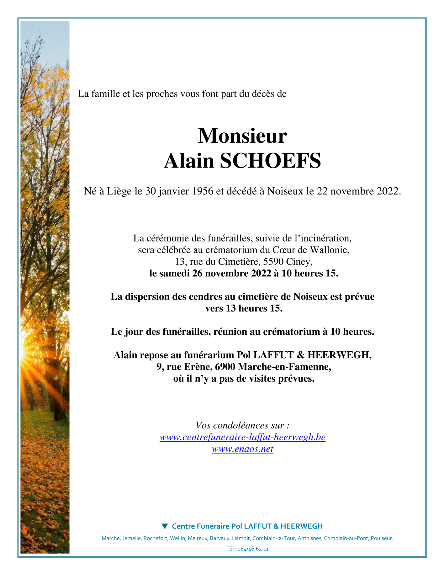 Décédé à Noiseux (5377) le mardi 22 novembre 2022 à l'âge de 66 ans