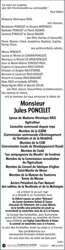 Décédé à Héron (4217) le mardi 22 novembre 2022 à l'âge de 75 ans